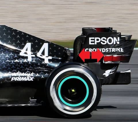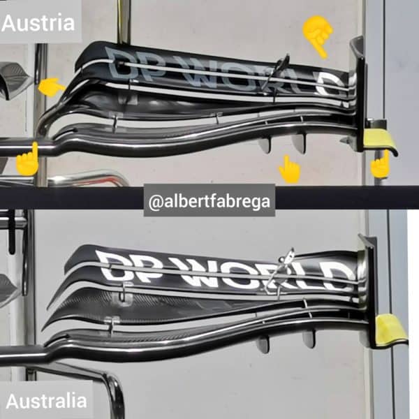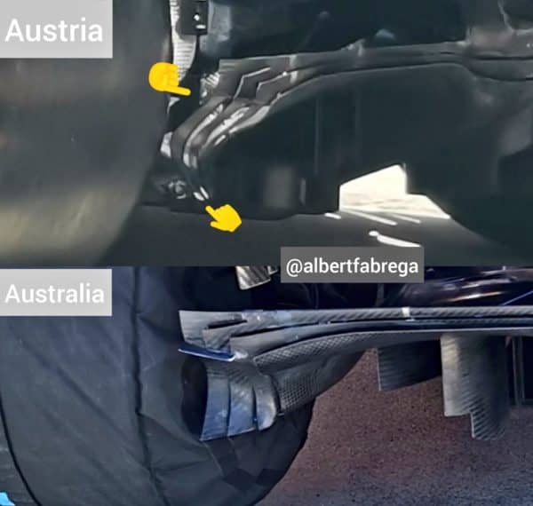 Aggiornamenti prima di tutto al diffusore per Mercedes, che ne va a cambiare leggermente la curvatura e pare elimini il piccolo inserto che separava lo strato superiore da quello inferiore.