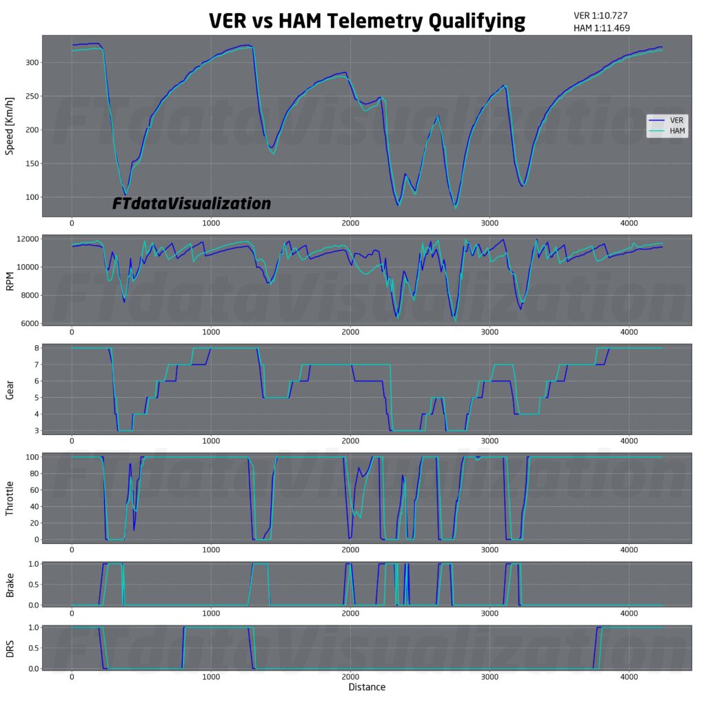 Le due Mercedes sono state le due monoposto che hanno perso meno da Verstappen nelle già citate curve 4 e 6 mentre si sono dimostrate addirittura più veloci del campione del mondo in altre zone come curva 1, 10 e 12. La squadra tedesca però si porta dietro sempre lo stesso problema della mancanza di velocità in rettilineo. Hamilton e Russell infatti hanno fatto segnare le velocità massime più basse di tutti nel corso della sessione: solo 328 km/h.