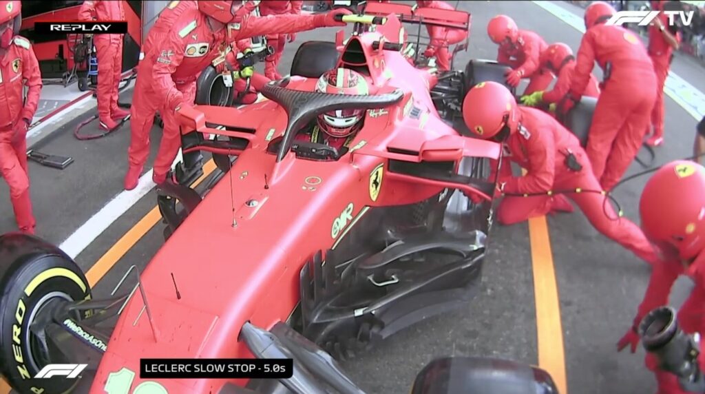 È presumibile che la perdita di pressione sia stata istantanea, probabilmente dovuta ad un cedimento meccanico di una tenuta che ha impedito al muretto Ferrari di avere tempo necessario per far rientrare il pilota ai pit ed effettuare il refill. Va però detto che anche in caso contrario solitamente il rimedio vale per pochi giri (a seconda della gravità del danno), come abbiamo visto nel caso di Norris, fermato più volte.
