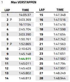 Nel giro successivo però, Charles riesce a far registrare l’unico giro realmente più veloce di Verstappen, guadagnandogli quasi mezzo secondo. Questo strappo è stato poi influente in maniera negativa sul resto della gara, con le gomme che sono andate man mano a degradarsi fino a portare il pilota monegasco ad un tempo medio di 1:48 alto.