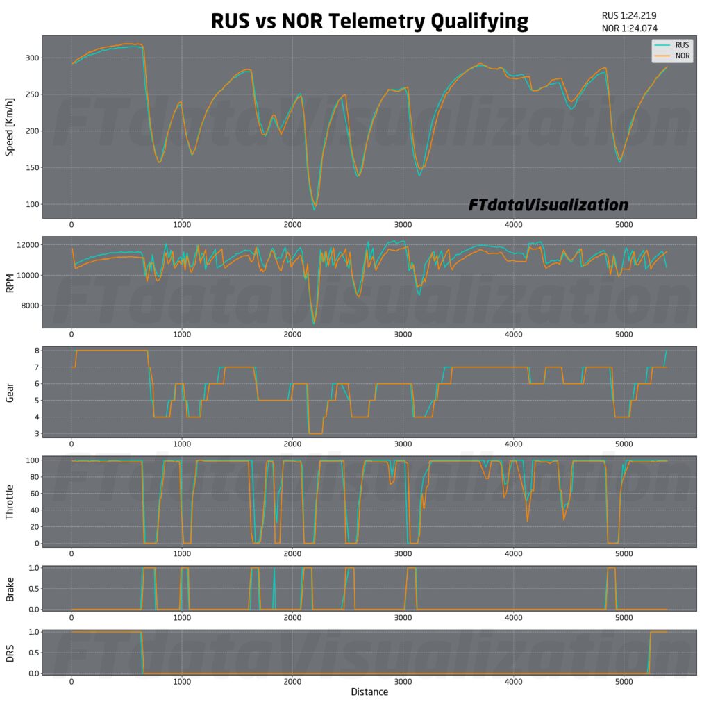 Male le Ferrari: la scuderia italiana, dopo aver iniziato bene la sessione con pista sporca, ha subìto il ritorno dei rivali man mano che la pista si gommava tanto che Leclerc perde addirittura 4 decimi nel primo settore e ben 3 nell’ultimo salvo mantenere il passo di Verstappen nel secondo. Il monegasco si era lamentato nel corso delle qualifiche di problemi al motore e la sua telemetria è anche la più “strana” tra i piloti in top 6. Nel primo settore perde molto in uscita di curva 1 mentre in curva 13 scala marcia a caso perdendo un sacco di tempo: probabilmente non il giro ideale. La buona notizia però, forse, è che nelle qualifiche Shootout ci sarà nuovamente pista calda e sporca sulla quale gli avversari avevano faticato maggiormente.