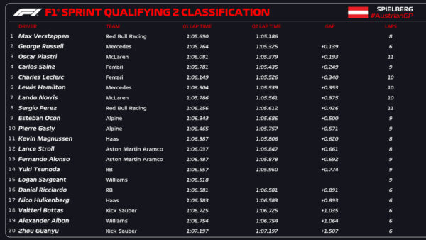 SQ2 Qualifiche Sprint GP Austria: passano le Alpine e i top team