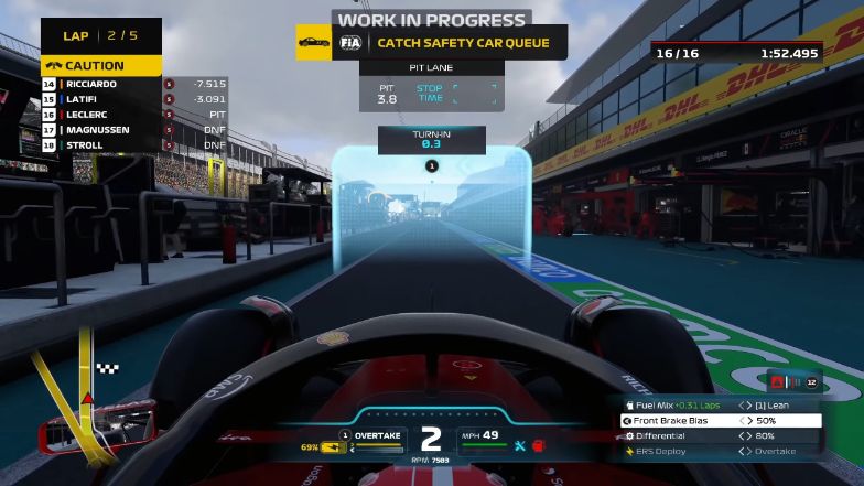 Rimane il bug grafico dell’angolo volante che non rispetta i gradi di sterzata durante la guida automatica all’ingresso e uscita dai box, ma è migliorato leggermente rispetto agli anni passati.