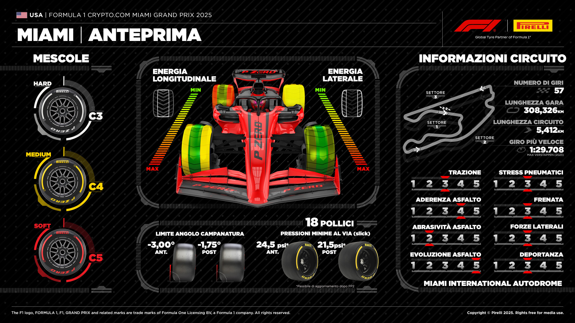 Le scelte di Pirelli per il Gran Premio di Miami 2025 di F1