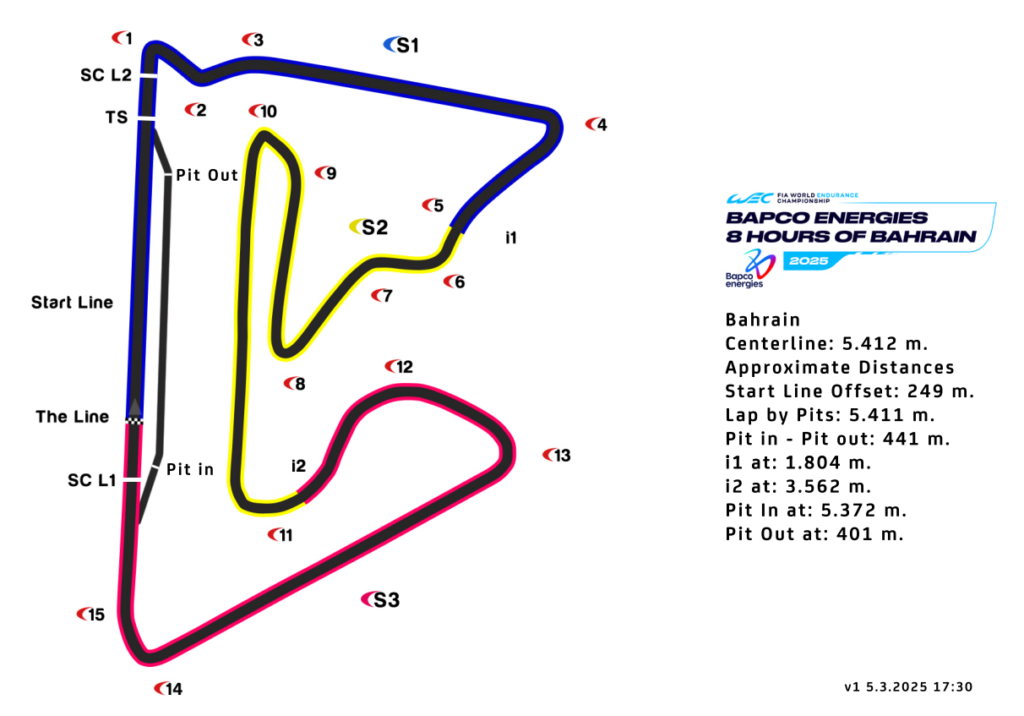 La pista, inaugurata nel 2004 nella periferia della capitale Manama, è una presenza praticamente fissa nel WEC fin dalla sua fondazione. Assente dal calendario nel solo 2018 (Super-season), ha ospitato un doppio appuntamento nella stagione successiva, con una gara a dicembre 2019 e la chiusura del campionato a novembre 2020. Il circuito di Sakhir, ben conosciuto dal pubblico visto anche l’impiego in Formula 1, è una delle migliori creature di Hermann Tilke. Il tracciato presenta 7 varianti, ma il WEC ha sempre utilizzato la “Grand Prix”, nonostante esista una versione “Endurance” che ne suggerirebbe l’utilizzo per le gare di durata. A livello di grandi competizioni solo la F1 ha sfruttato quest’ultima versione del circuito (nel 2010), oltre alla “Outer” utilizzata nel 2020 per una gara bis nel periodo COVID. Anche le versioni “Oasis” e “Paddock” sono omologate FIA Grade 1, il più alto livello di sicurezza per i circuiti.