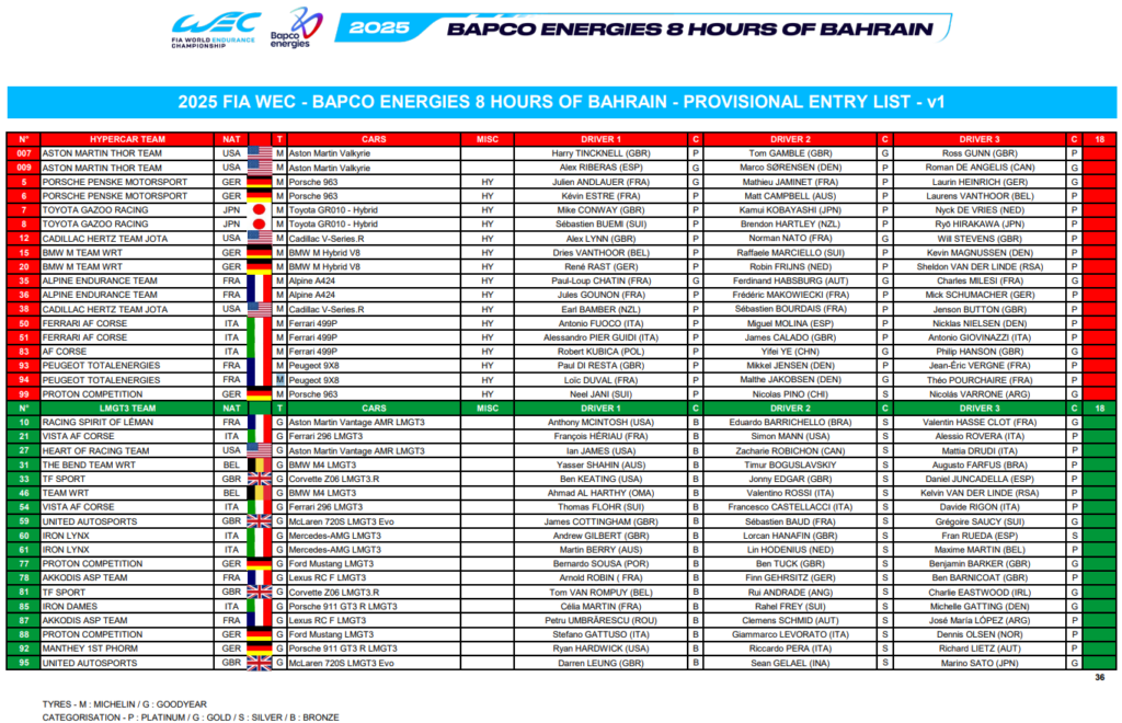 Al momento non c’è nessuna novità nella entry list delle LMGT3, che ripropone esattamente gli stessi equipaggi della 6 Ore del Fuji.