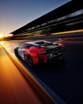 Si scopre poi un aggiornamento del sistema di rifornimento e della sensoristica allegata, oltre alla “nuova configurazione dei radiatori e un raffreddamento ottimizzato per i turbocompressori“. Questi ultimi tra l’altro sono forse gli unici componenti modificati dal motore stradale, un V8 4.0 litri biturbo che in strada è coadiuvato da un’unità elettrica. Nella versione da corsa non c’è niente di tutto ciò, ed è così che i turbo rivisti vanno a costituire “un nuovo sistema di sovralimentazione per rispettare le normative GT3.” Conseguentemente “la potenza, limitata a circa 550 CV in base al Balance of Performance, è erogata da un’unità completamente ricalibrata”. Rimangono invece “stradali” moltissimi altri componenti, come l’albero motore piatto e le bielle in titanio. L’olio motore è sviluppato in collaborazione con Pertamina Fastron Lubricants, mentre il sistema di scarico è un progetto dedicato realizzato da Capristo.