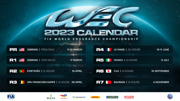 Quest’anno ci saranno 7 gare, una in più della scorsa stagione. C’è il ritorno del Portogallo, a Portimao, dove si era corso nel 2021 dopo le modifiche al calendario causa COVID. Ben 37 auto iscritte all’intero campionato del mondo, mentre il parterre si estenderà a 62 auto per la 24H di Le Mans! Il calendario, come l’anno scorso, parte dagli USA con il Prologo e la prima gara, Mille Miglia (con limite di 8 ore) a Sebring. Sarà poi la volta dell’Europa, con due gare da 6 ore a Portimao e Spa ad aprile, prima di spostarsi in Francia per la gara delle gare. Il Centenario della 24H di Le Mans si terrà a inizio giugno, quindi la carovana del WEC si trasferirà in Italia, per la 6 Ore di Monza a luglio. Conclusione a Oriente anche quest’anno, a settembre la 6 Ore del Fuji e quindi a novembre la 8 Ore del Bahrain.