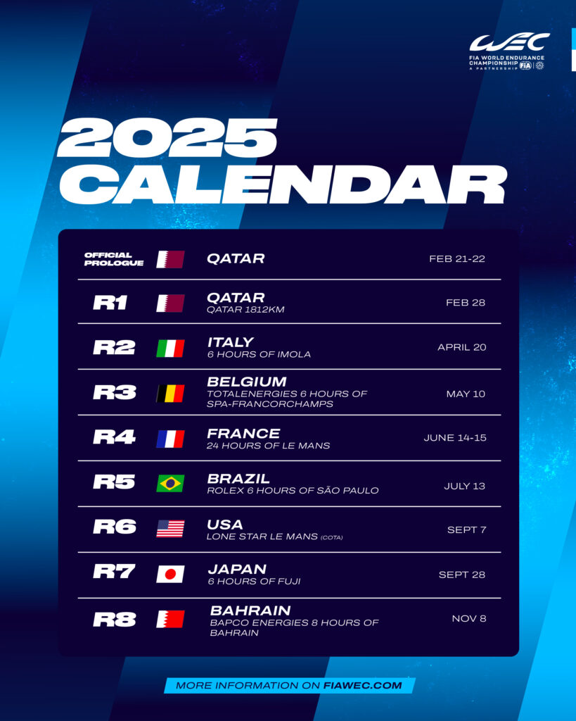 Che il calendario potesse restare sostanzialmente lo stesso era nell’aria da tempo, visto anche il timore di molti team di arrivare a una espansione incontrollata. Della possibilità per Imola di rimanere in calendario per un altro anno ci era giunta qualche timida voce, ma un rinnovo fino al 2028 certo non se l’aspettava nessuno! La bellissima gara di quest’anno ha probabilmente influito, ma è soprattutto il lavoro dell’Autodromo, con la promessa dell’espansione dei garage per accogliere le 40 auto, che ha dato vita a questo lungo rinnovo. Alla presenza del Sindaco di Imola è stato quindi annunciato che vedremo il WEC a Imola per altri 4 anni, dal 2025 al 2028, dopo l’edizione di quest’anno. Evento 2024 che alla conferenza ACO dell’anno scorso era stato presentato quasi come una provvisoria sostituzione per i lavori di Monza, e che invece adesso ne ha decisamente preso il posto, e per tanti anni. Ecco il calendario completo del WEC 2025.