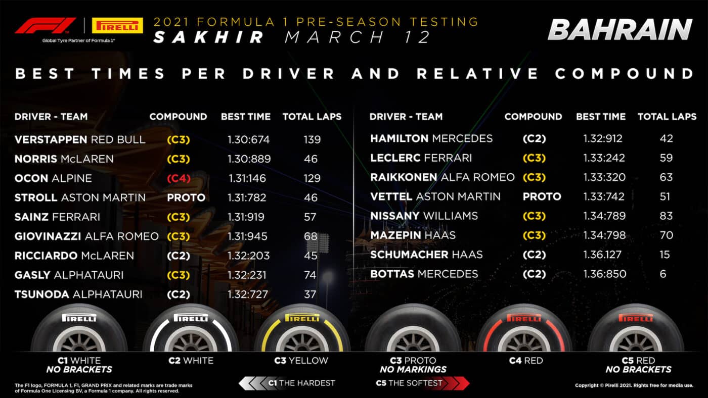 Ecco la classifica completa al termine del Day 1 dei test in Bahrain: