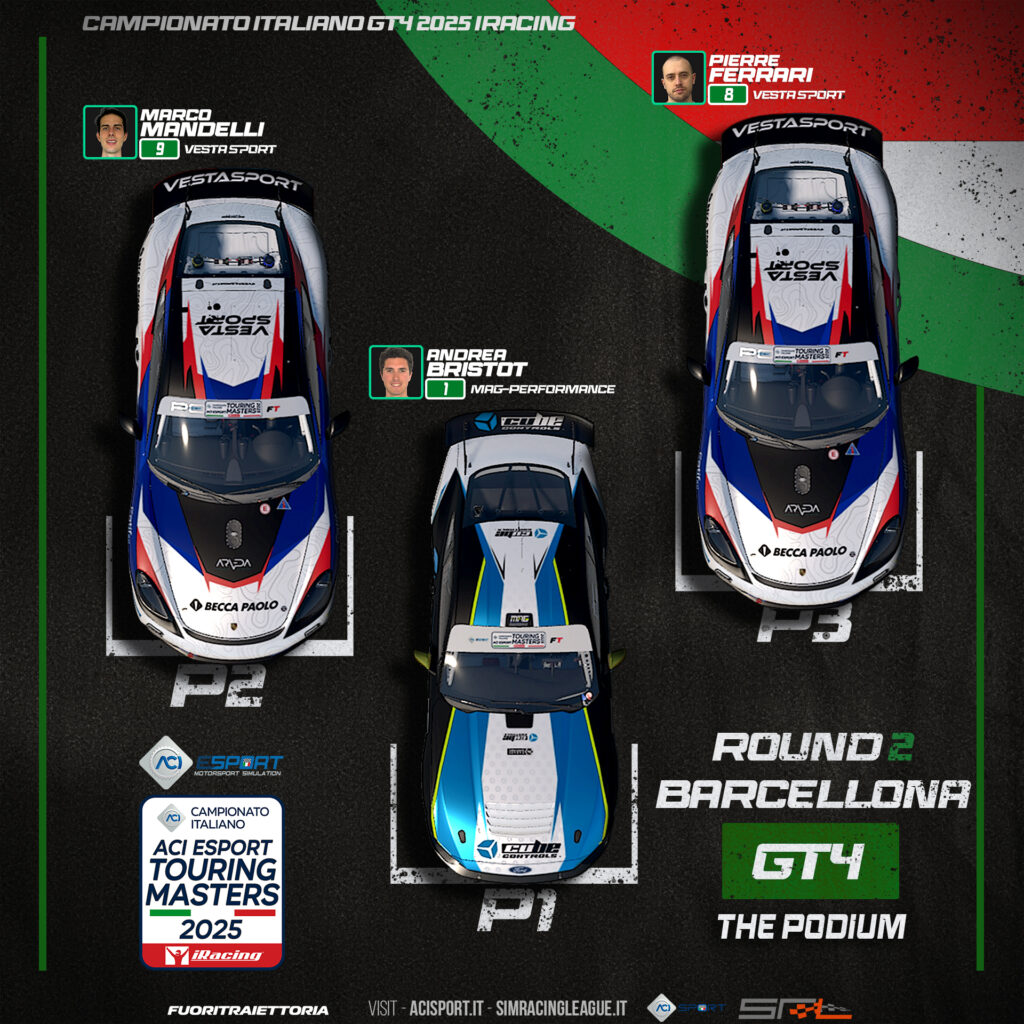 Ci sono poche certezze nella vita: lo scorrere del tempo, l’aumento dell’entropia in un sistema isolato lontano dall’equilibrio e la vittoria di Bristot. Anche quando non vuole, anche quando gli altri sono più veloci, Bristot comunque vince. Seconda vittoria su due appuntamenti per lui in GT4. In classe TCR invece ha trionfato Stefanina, che questa volta è riuscito a concretizzare il buon passo mostrato anche nello scorso appuntamento. Ecco cosa è successo nel secondo round del campionato ACI Esport Touring Masters 2025 organizzato da SimRacingLeague su iRacing.