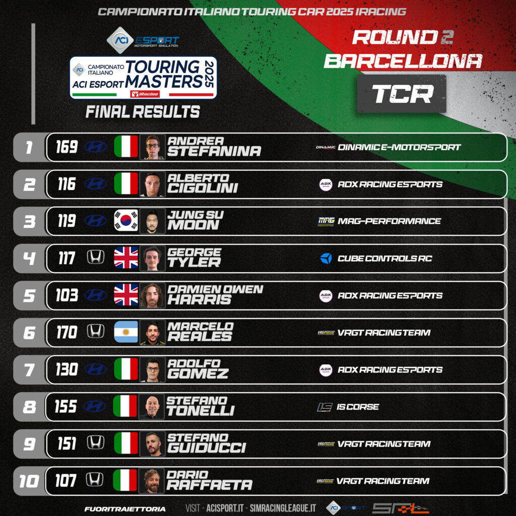 Le classifiche del campionato ACI Esport Touring Masters 2025