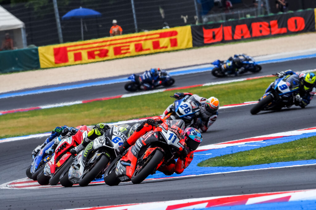 Viso da ragazzino e guida da veterano, Nicolò Bulega quest’anno sembra trovarsi davvero a proprio agio sulla Panigale V2 del team Ducati Aruba.it con la quale macina vittorie nel World Supersport Championship. Abbiamo avuto modo di fare una interessantissima chiacchierata con lui durante l’Emilia-Romagna Round in quel di Misano, ecco cosa ci ha raccontato.